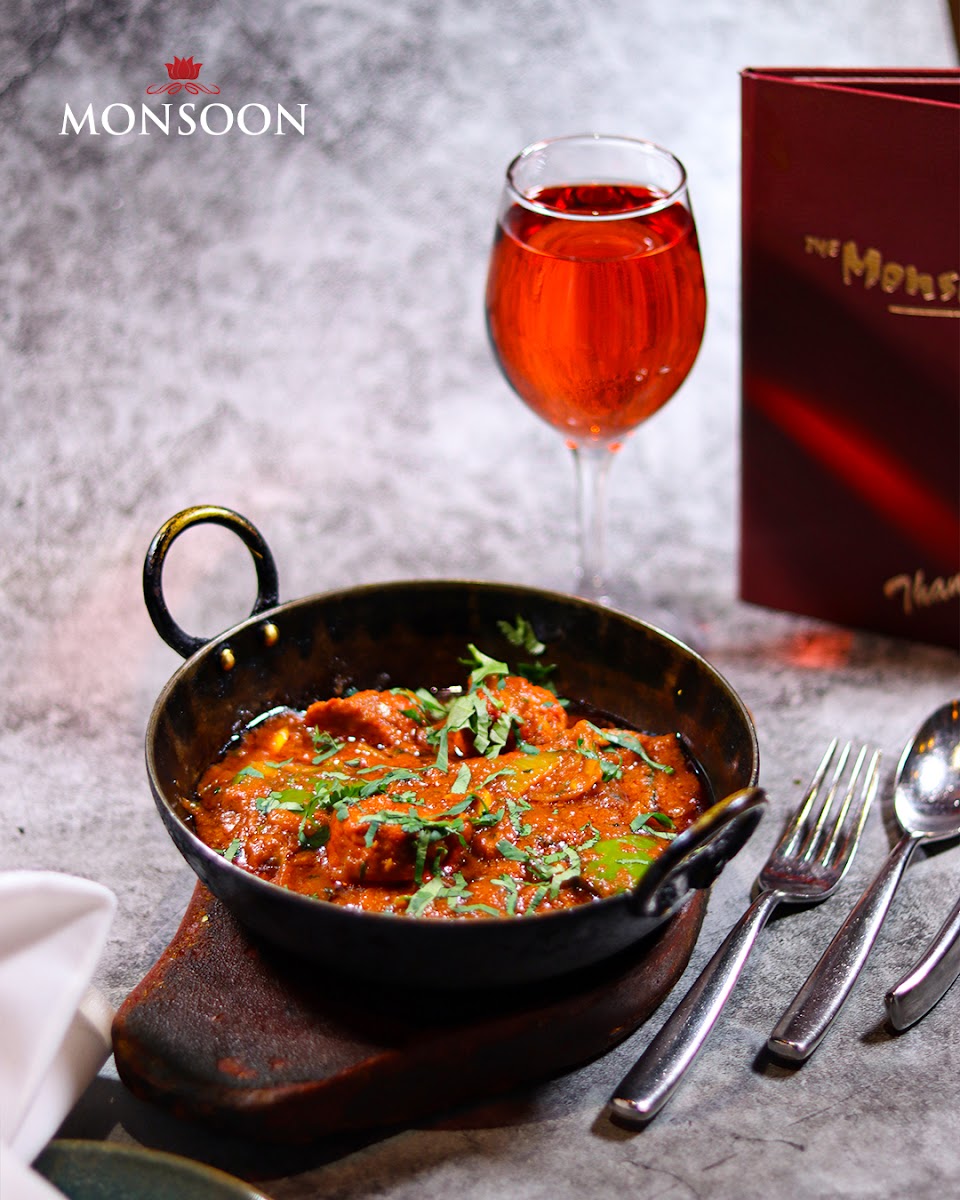 The menu at The Monsoon is packed with some of the best-loved Indian dishes that will transport your taste buds to India. If you’re craving something rich and aromatic, the Butter Chicken and Chicken Tikka Masala are must-tries. For a bit of heat, the Vindaloo with Garlic Naan will definitely hit the spot. If you're in the mood for something hearty, the Meat Thali and Karahi will provide a satisfying feast. Don’t miss out on their Lamb Tikka and Tandoori Lamb Chops, which are grilled to perfection, or indulge in the flavorful Chicken Jalfrezi and Garlic Chili Lamb.